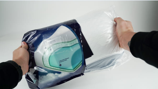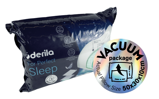 Cuando recibas tu almohada Derila, verás que está en una bolsa envasada al vacío. El equipo Derila ha elegido este método por razones medioambientales, para que el paquete sea más pequeño. Después de sacar la almohada del embalaje, déjala sin usar durante 24 horas para que recupere su forma y tamaño normal.
